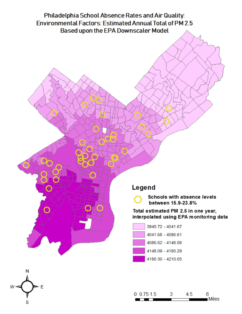 This report is looking at the current absence rates at Philadelphia schools, along with the environmental factors which exist in their areas. While the environment in which a child’s school is located would not be the only contributing factor to their health outcome, it does play a major role in their life. While acknowledging that other factors such as the home environment, smoking, and other environmental contaminants may contribute to a child developing asthma, I am looking specifically at the school environment, because of the amount of time that a child will spend there, as well as the demonstrated effects that having an asthma-related health emergency during school can have on a child’s educational well-being.